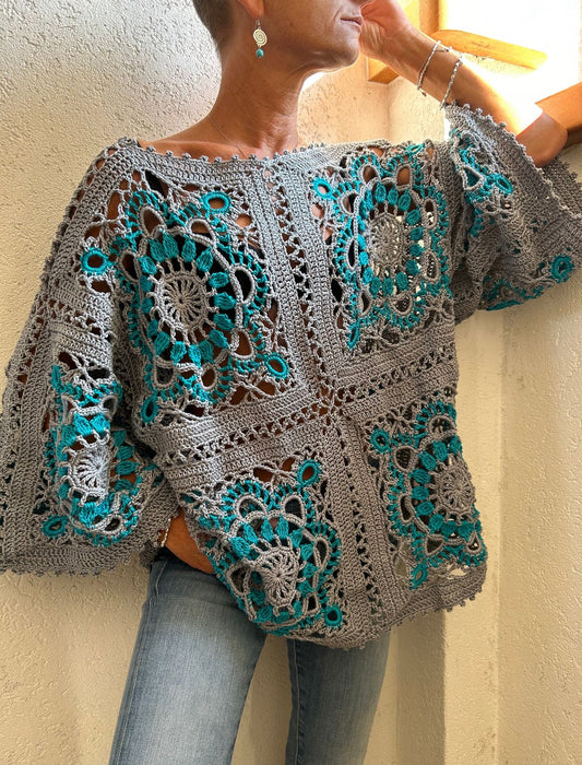 Sonnenspitzen-Pullover Häkelmuster PDF 🇩🇪