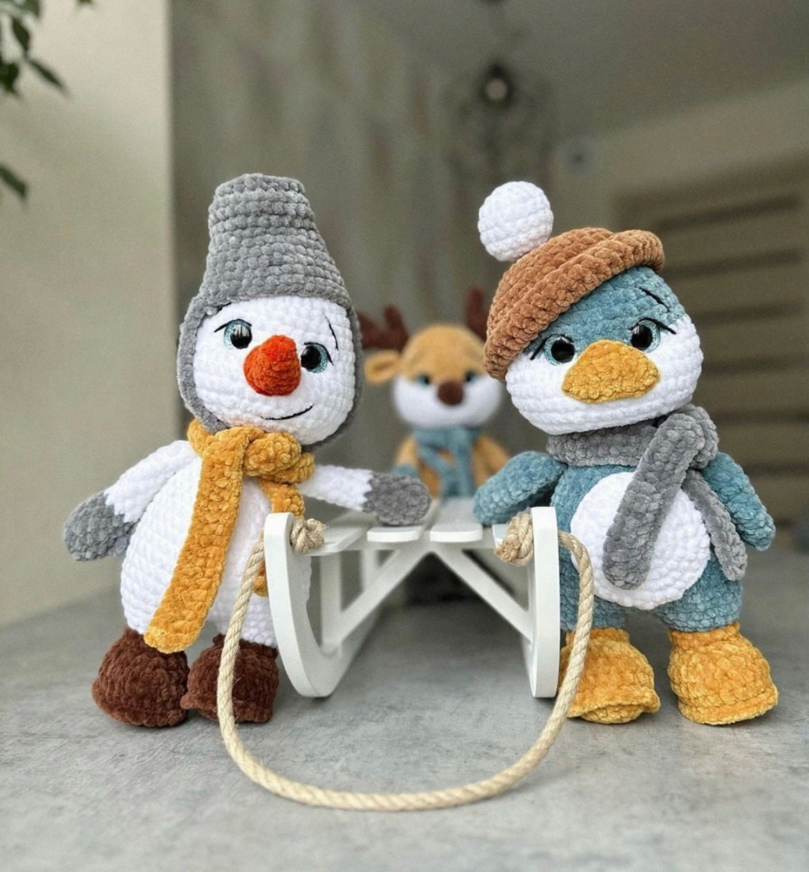 🎁 3 Figuren in einem Muster – Schneemann, Pinguin & Rentier in einem Set